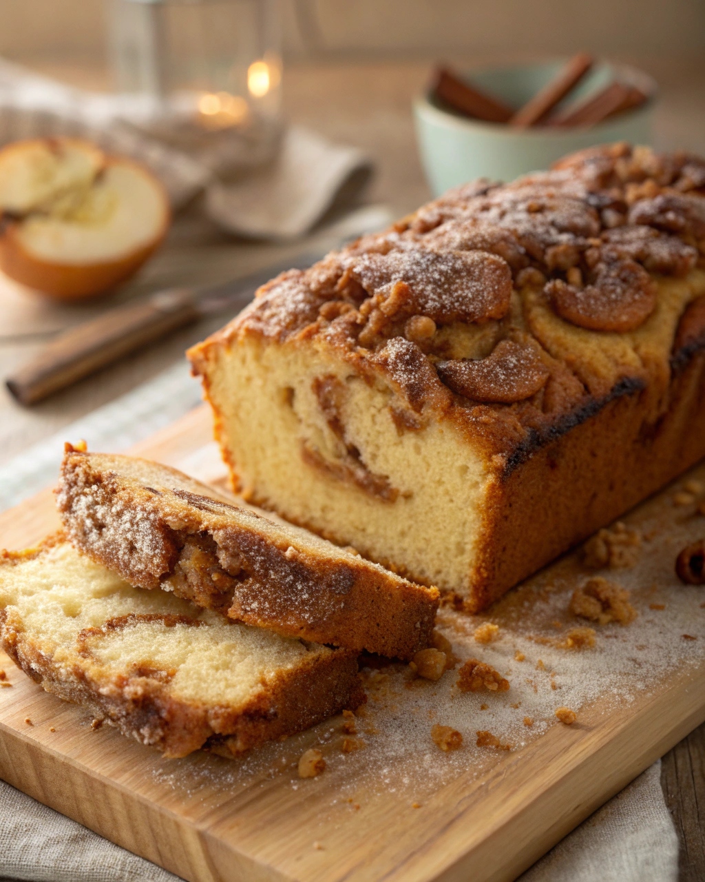 The layering method—half the batter, apples and cinnamon mixture, then the remaining batter—ensures that every slice has a balance of cake, fruit, and spice. Swirling the cinnamon sugar lightly into the top layer gives the finished loaf a marbled effect that’s both beautiful and delicious.