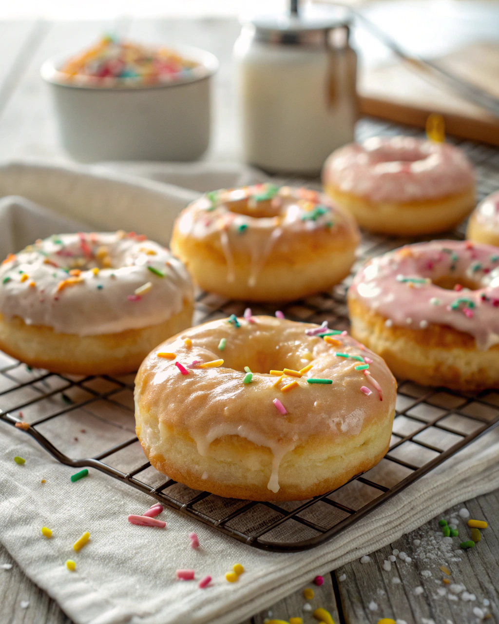 The glaze is where the fun begins. Made with powdered sugar and a touch of cream, it’s silky smooth and adds just the right sweetness. Once the donuts are dipped or brushed with glaze, you can add sprinkles for a festive, colorful finish. They look as good as they taste, making them perfect for parties, holidays, or even just a cheerful morning treat.