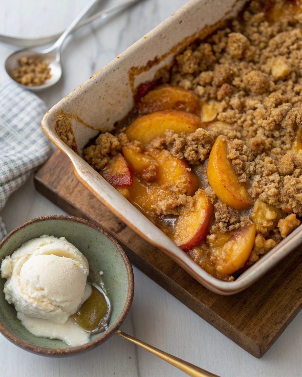 Its versatility is another advantage. Though peaches are the star, the crisp topping pairs beautifully with other fruits as well—plums, nectarines, or even berries. This adaptability makes it a recipe you can return to throughout the year, adjusting to whatever fruit is in season.