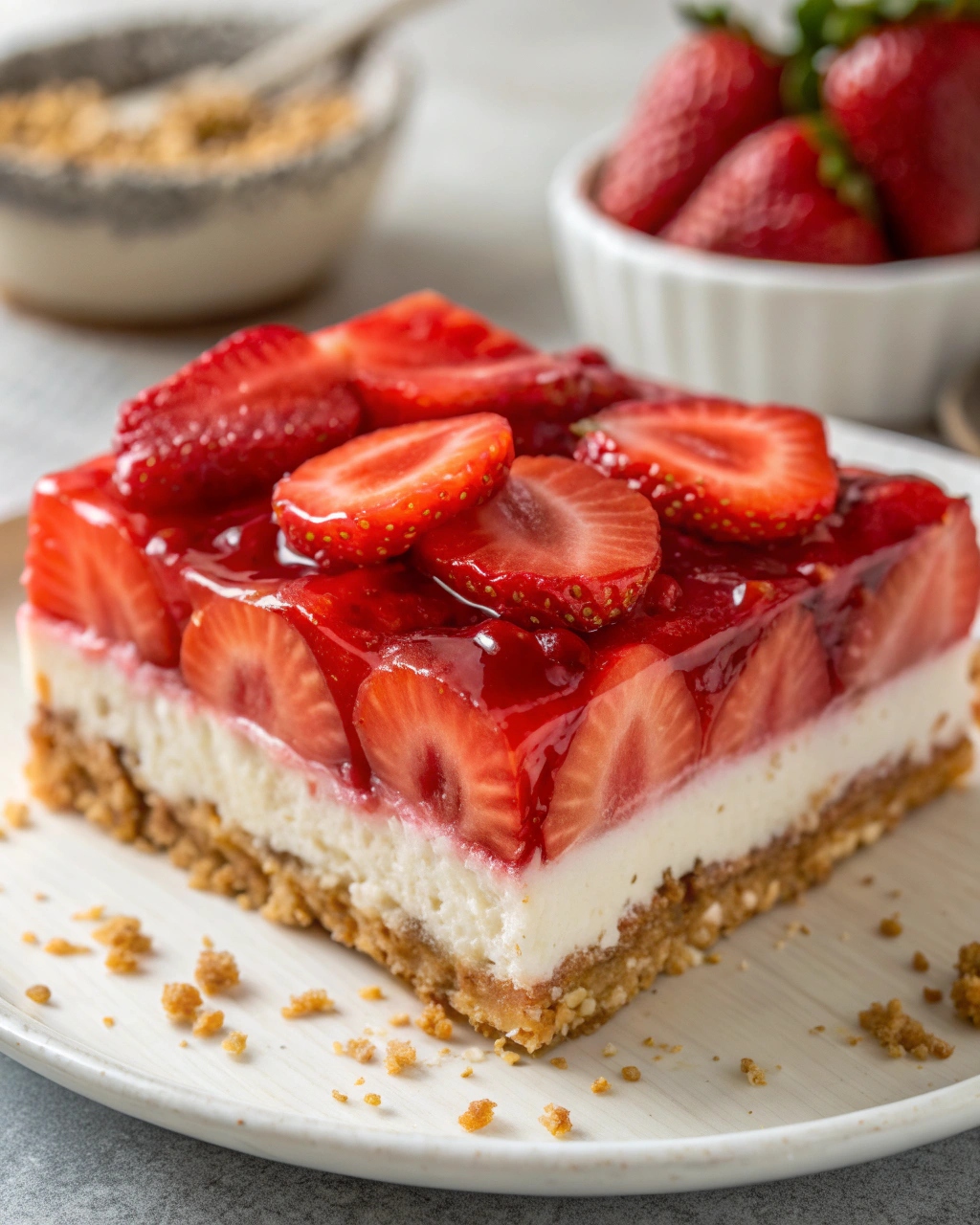 Pairing is also easy. This dessert goes well with light meals such as grilled chicken, salads, or sandwiches, since its sweetness rounds out the menu without being too heavy. It’s especially refreshing during the warmer months when strawberries are in season.