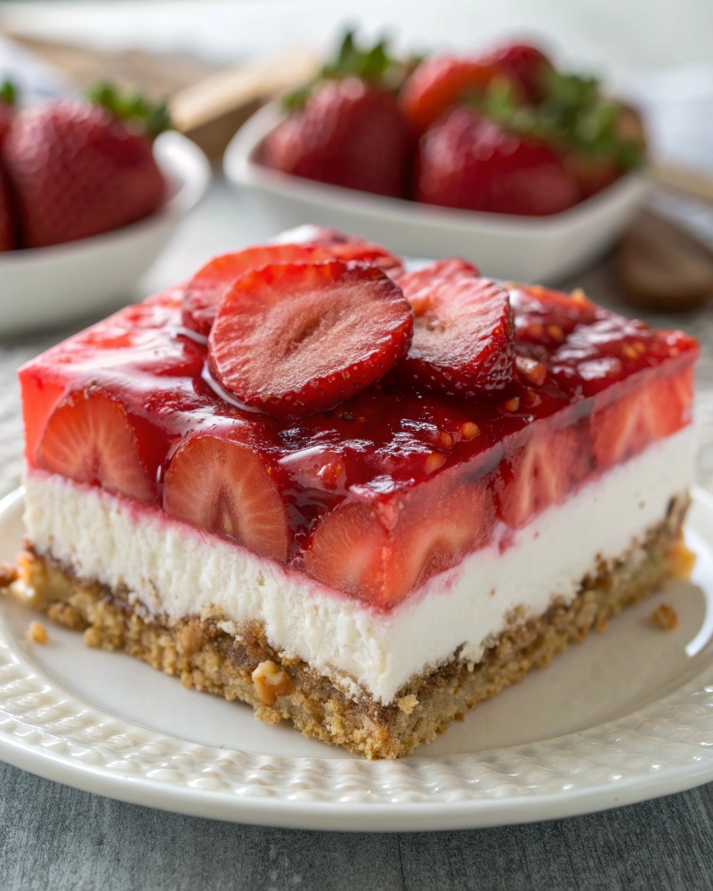 For family bakers, this is also a fun recipe to make with kids. They’ll love helping press the pretzels into the pan or stirring strawberries into the gelatin. It’s interactive and rewarding once you slice into it.
